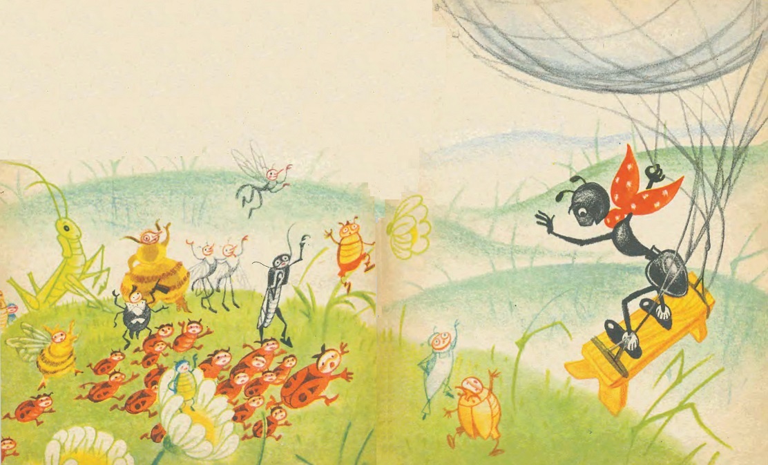 – Ай-ай-ай, а я забыла поблагодарить его за то, что он сделал для моих маленьких крошек, – заволновалась красненькая букашка и бросилась бежать за воздушным шаром.