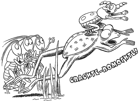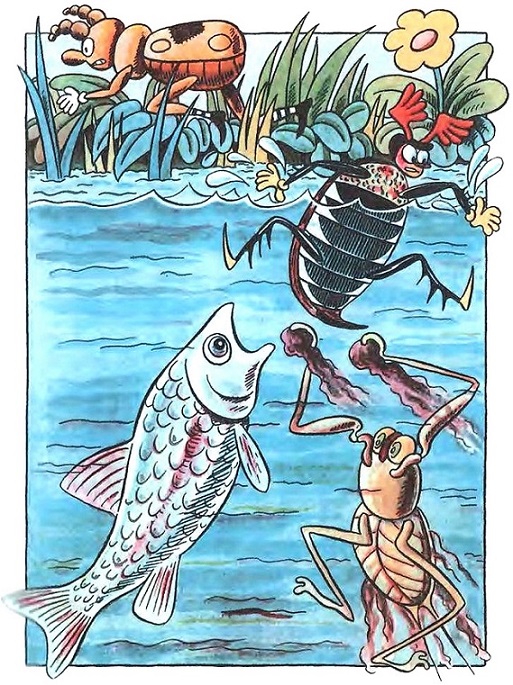 – Дети, скорее, опустите усики в воду и вытаскивайте Пытлика! – скомандовал папаша-кузнечик.