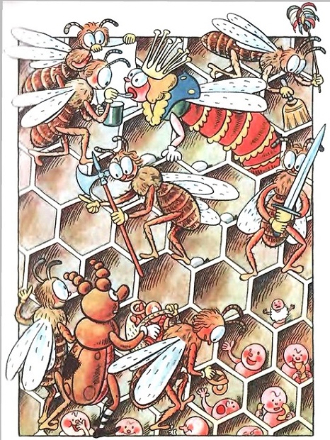 Но вдруг все пчёлы перестали кормить деток, и кто-то пихнул Пытлика в бок:
