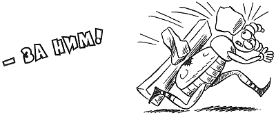 Но вдруг он куда-то влетел, вокруг шеи у него обмотались верёвки, о голову ударилось несколько брусьев и – трах-тара-рах – какая-то конструкция обвалилась вместе с Пытликом, будто случилось землетрясение. Пытлик упал навзничь, на голове у него красовалась кадушка со строительным раствором, а на нос накололись какие-то бумажки с каракулями.