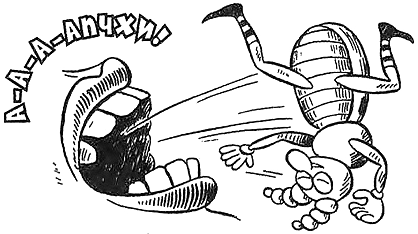 – А-а-а-апчхи! – человек чихнул прямо на Пытлика: жучка подхватило вихрем, подбросило в воздух и швырнуло прямо в огромную паутину на ветках розового куста – шлёп!