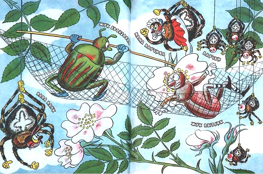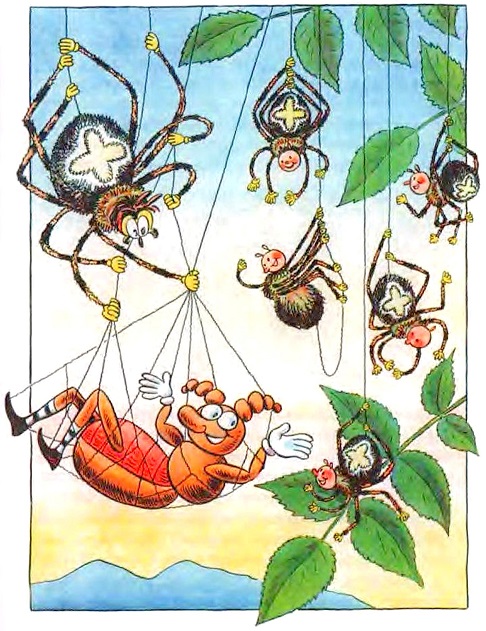 Маленькие паучки на своих нитях просто покатывались со смеху и хлопали в ладоши. Другие букашки, наблюдавшие эту сцену, потом всем о ней рассказывали.