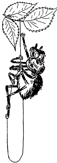Но до земли они не долетели. Бронзовка расправил крылья и улетел. А Пытлик повис одной лапой на паутине. Шляпка так и сидела у него на голове: цветок крепко прилепился к измазанным медом усикам.
