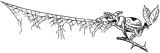– Вот, вот, это точно паутина лезет! – простонал он, сложил лапки и прыгнул с ветки вниз, прямо как паук.