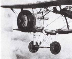 И пилоты, и наблюдатели уделяли большое внимание обучению ведения стрельбы. На снимке: стрелок, стоящий в люке фюзеляжа учебного самолета Тип 90, прицеливается в парашют, используемый в качестве воздушной мишени.