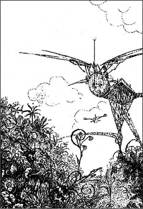 Товарищ Вольдемар в свободные от труда на фабрике часы занимался еще строительством. Ему же принадлежала идея воздушных санаторий и заоблачных островов отдыха. Старые санатории и города отдыха, впрочем, еще не изжили себя и, пролетая над окрестностями, Эрле и Илья видели быстро развертывающуюся под ними карту, исчерченную серебряными каналами, пестреющую зелеными пятнами садов и рощ, золотыми точками шпилей общественных зданий, сверкающую гранями колоссальных теплиц.