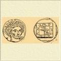 РЕВЕРС. Большая греческая буква «А», маленькие «ар» (Аргос) и «трикветра», вписанные в квадрат.
