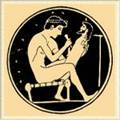 Резник работает характерным для того времени тонким долотом на длинной ручке. Изображение с красно-фигурной аттической вазы. 480 г. до н. э.