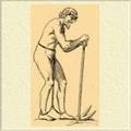 Раб, работающий закованным в цепи, по изображению на гемме, Предполагают, что это изображен Сатурн в цепях, после того как его брат Титан отобрал у него власть. Рабы, получавшие свободу, посвящали свои цепи богам.