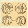 Фраат IV, царь Парфии (слева). По изображению на его монете. Клавдий Друз Старший (справа). Изображение на монете.