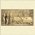 Императору прислуживает старший стольник (пфальцграф Рейнский). На пиру присутствует духовенство.