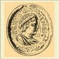 Вверху. АВЕРС. В поле – крест с четырьмя шариками. Надпись по кругу: VNRADVS RE+. РЕВЕРС. В поле – здание церкви. Надпись по кругу: MOGVNT1A CIVIT+ (место чеканки – Майнц). Внизу. АВЕРС. В поле – надпись REX. Надпись по кругу: CVNCADV. РЕВЕРС.