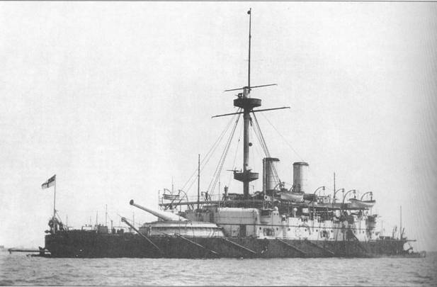 Собрат этого небольшого броненосца береговой обороны («Хиро») был заложен в апреле 1884 г., и в рамках идеи его модификации подразумевался корабль «с большой надстройкой, эффективной вспомогательной артиллерией и 18-тонным орудием в полубашне на корме. Однако цена подобного судна возрастала вдвое против «усовершенствованного «Конкерора». Когда впоследствии проект новых кораблей подвергся всесторонней оценке, на тех же составляющих боевой эффективности настояли как на необходимых для линейного корабля 1-го класса и тип «Конкерора», экстраполированный с изменениями согласно новых условий (толщина брони, калибр артиллерии) вырос в водоизмещении с 6200 до 10470 т, а стоимость его удвоилась».22