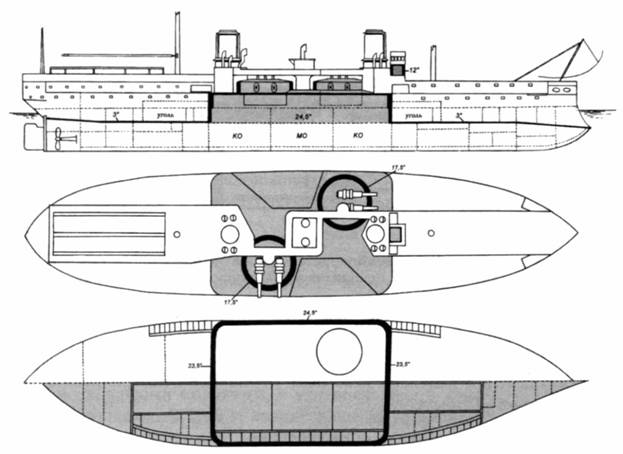 Подводного корпуса, ограниченного сверху 76мм броневой палубой, простиравшейся от тарана до головы руля, с машинно-котельными отделениями, расположенными под цитаделью, и везде, где только возможно, разделённого на водонепроницаемые отсеки.