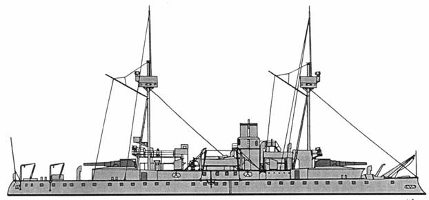 Вооружение 2 12725 казнозарядных 4 6» казнозарядных 7 6-фунтовых скорострельных 13 мелкокалиберных 6 356мм надводных торпедных аппаратов 1 торпедный катер (вес бортового залпа 739 кг)