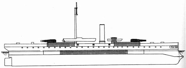 – «Дредноут» с центральной цитаделью и безбронными оконечностями.
