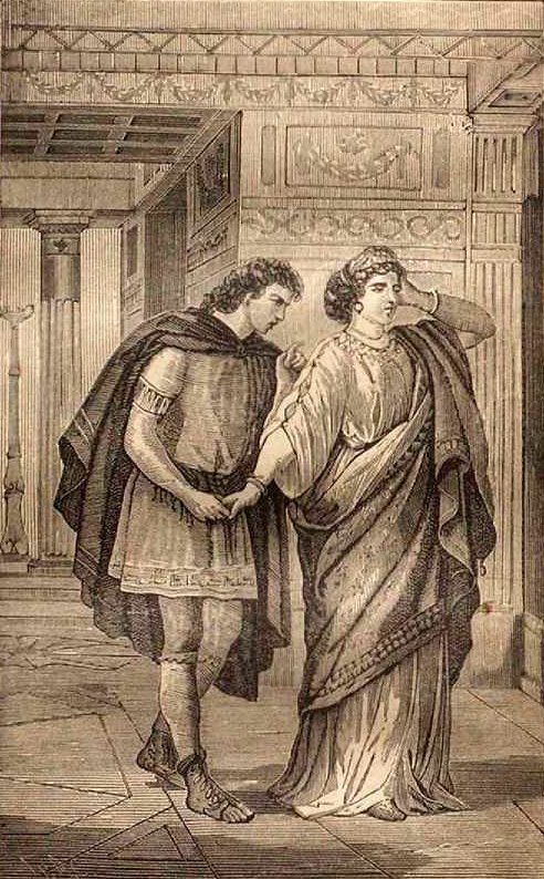 От этого брака родился сын, сначала названный в честь отца Домицием, а впоследствии Нероном. Осужденная императором Калигулой в государственном преступлении, Агриппина была отправлена в ссылку, но по восшествии на престол Клавдия была возвращена. Сделавшись императрицей, Агриппина могла удовлетворять своему тщеславию и для достижения своих целей употребляла самые жестокие средства и развратничала. Обладая далеко недюжинным умом, Агриппина легко забрала Клавдия в свои руки и сделалась всемогущею в государстве. Она тотчас же добилась титула Августы и, действительно, стала императрицей: давала аудиенции гражданам, занималась делами государства, вела беседы с посланниками, ходила в Капитолий и на всех торжествах восседала на первом месте. Чтобы показать свою власть вне Рима, она основала колонию в Рено, в стране, где родилась, и приказала назвать новую колонию своим именем «Агриппина». Ее заветной мечтой было возвести на тронь сына своего, Домиция, при помощи которого, она рассчитывала властвовать так же, как властвовала при престарелом муже; для достижения этой цели Агриппина совершала всевозможные злодейства. Новая императрица призывала к власти людей вполне недостойных; они входили в сенат не имея ни ума, ни чести и единственно служили лишь для поддержки деспотизма Агриппины. Подобный состав сената, само собою разумеется, не заботился о пользе граждан, а служил лишь орудием в руках тщеславной Агриппины. Таким образом Рим, после развратной Мессалины, попал под тиранию Агриппины, которая была более жестока, чем первая, и никак не менее развратна. Разница между двумя этими императрицами была та, что Мессалина открыто позорила государство, Агриппина же, напротив, делая то же самое, умела скрывать дурное под личиной благочестия. Она, нисколько не задумываясь, отдавала себя каждому, кто мог служить орудием для достижения ее тщеславных целей. Мессалина, нагло, даже с триумфом выставляла свой позор на свет Божий, – хитрая Агриппина сумела уверить всех в своей честности. Первая была разнузданная развратница, вторая – скрытная интриганка. Утвердившись на троне, Агриппина тотчас же набросилась на Лёлию Паулину, мечтавшую быть императрицей. Не желая уничтожить без всякого основания Паулину, Агриппина искала факта, могущего служить юридическим основанием для осуждения ненавистной ей Паулины; основания, разумеется, никакого не было, но Агриппина его выдумала: она объявила, что Паулина, при помощи оракулов, желала знать будущее императора. Это смешное обвинение, конечно, не могло служить юридическим основанием, прежде всего уже потому, что знать будущее императора не есть преступление, но хитрая Агриппина сумела направить дело так, что даже сам император Клавдий присутствовал в сенате, поддерживая обвинение против Паулины. Длинной речью Клавдий старался доказать, что Лёлия Паулина, желая знать его будущее, ставила государство в опасное положение, «а потому, – говорил император, – ради публичной безопасности, Паулина должна быть осуждена». Сенат, разумеется, приговорил обвиняемую к ссылке и к конфискации всех ее богатств. Но Агриппина не удовольствовалась этим, она не могла быть покойна до тех пор, пока Паулина была жива. Лишь только несчастная прибыла на остров, куда была сослана, как жестокая Агриппина послала туда трибуна с пр