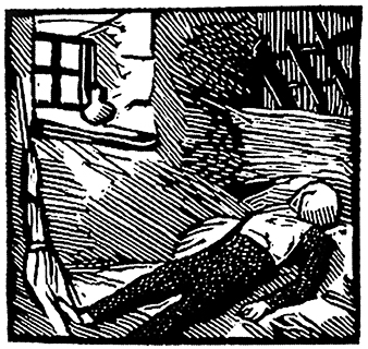 На мешках в дальнем углу лежал человек в грубой рубахе и синих штанах. Лицо его было прикрыто пёстрым ситцевым платком. Рядом горела, потрескивая, толстая свеча, воткнутая в бутылку.