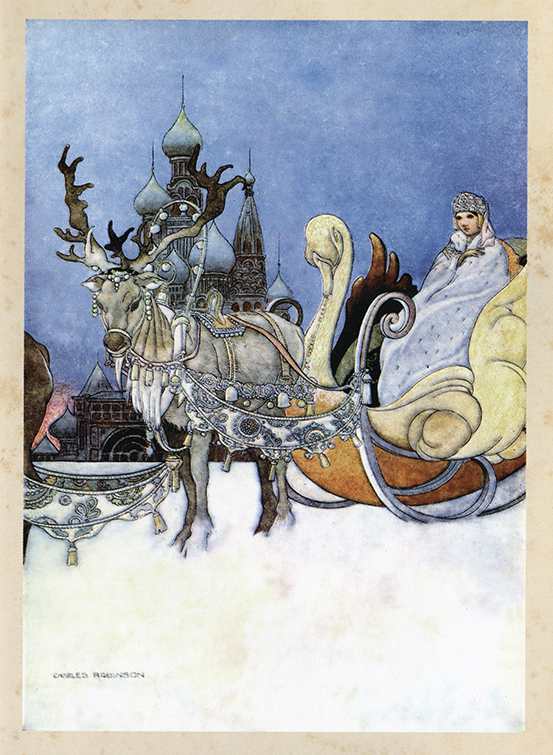 Сын Короля собирался жениться, и в стране царило всеобщее ликование. Целый год ждал Принц свою невесту, и наконец она приехала. Это была Русская Принцесса, и из Финляндии она примчалась в санях, запряжённых шестёркой оленей. Сани были искусно сделаны в виде позолоченного лебедя, между крыльями которого и сидела Принцесса. Её длинная горностаевая мантия ниспадала до земли, а голова была покрыта крошечной шапочкой из серебряной парчи. Русская Принцесса была бледна, как Ледяной дворец, в котором она когда-то жила. Когда она ехала в санях по улицам королевской столицы, прохожие удивлялись её бледности.
