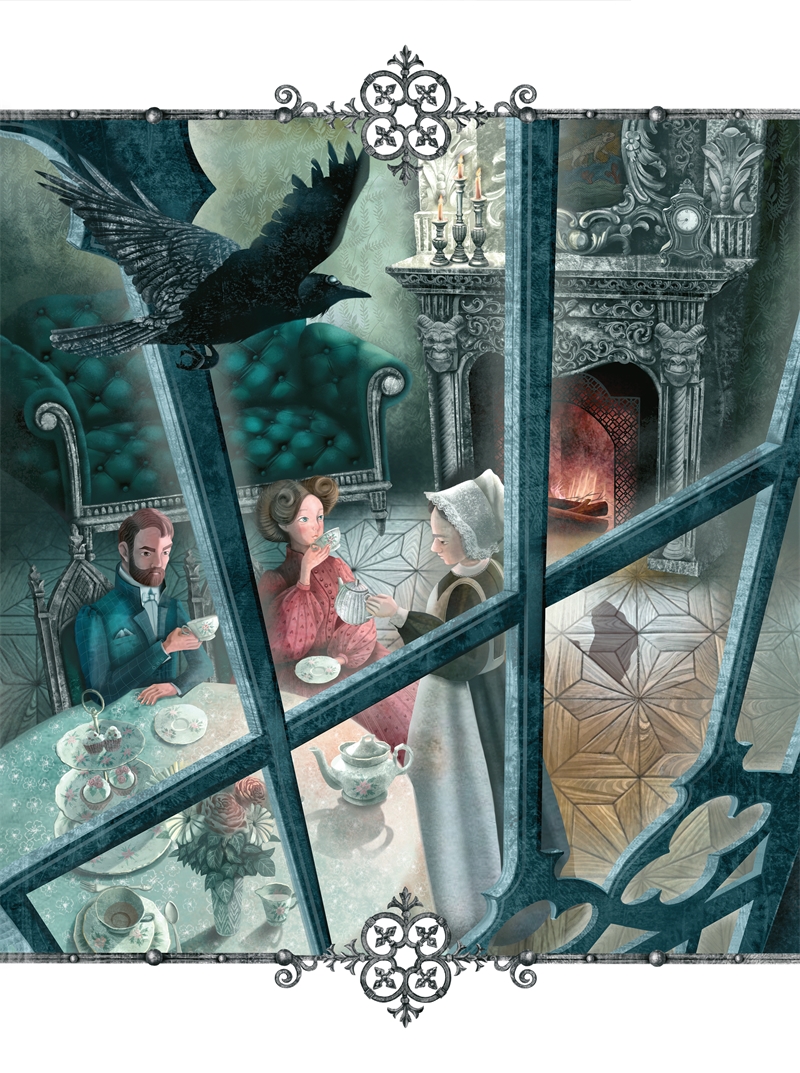 Они вошли вслед за нею в дом и, пройдя великолепный холл в стиле Тюдоров, очутились в библиотеке, длинной и низкой комнате. Ее стены были обшиты черным дубом, а в противоположном конце находилось большое окно из разноцветных стекол. Здесь для них был сервирован чай. Сняв пальто, они уселись за стол и стали разглядывать комнату, а миссис Эмни прислуживала им.
