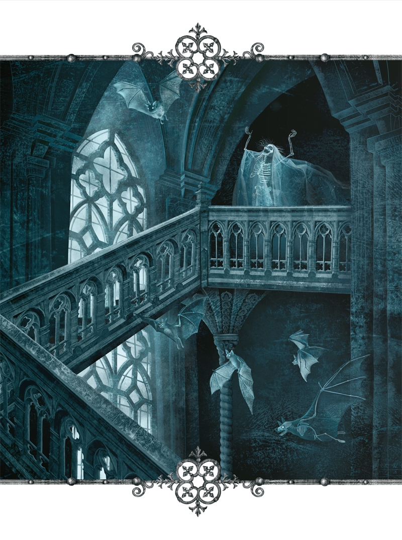Потом, ввиду того что кровати близнецов стоят близко друг к другу, он встанет между ними в образе зеленого заледенелого трупа, пока они не застынут от ужаса, и тогда он сбросит свой саван и, обнажив свои кости, будет шагать по комнате, вращая одним глазом, в роли Немого Даниила, или Скелета Самоубийцы, которая не раз производила большой эффект и которую он по силе считал равной своему исполнению Сумасшедшего Мартина, или Сокрытой Тайны.