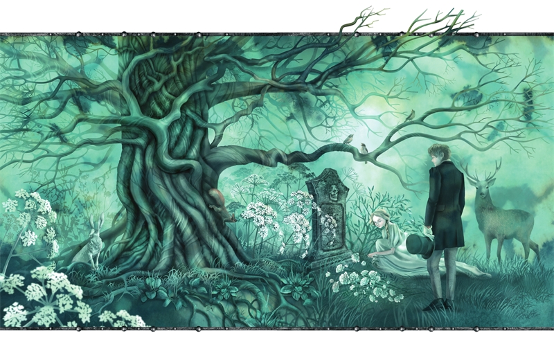Герцог и герцогиня, как только кончился медовый месяц, поехали в Кентервильский замок и на следующий день после приезда отправились пешком на пустынное кладбище у соснового бора. Сперва долго не могли выбрать надпись для могильной плиты сэра Симона, но наконец решили вырезать на ней просто инициалы его имени и те строки, что были на окне в библиотеке. Герцогиня принесла с собой букет чудесных роз, которыми она посыпала могилу, и, постояв немного над нею, они вошли в развалившийся алтарь старинной церкви. Герцогиня села на опрокинутую колонну, а муж расположился у ее ног, куря папиросу и смотря ей в прекрасные глаза. Вдруг он отбросил папиросу, взял герцогиню за руку и сказал: