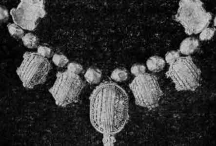 Но наиболее прекрасно ожерелье из золотых черепашек, панцири которых украшены мельчайшей зернью, а глаза инкрустированы вставками из белого непрозрачного стекла.