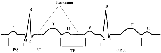 Любая ЭКГ состоит из нескольких зубцов, интервалов и сегментов, отражающих процесс распространения волны возбуждения по сердцу (рис. 6).