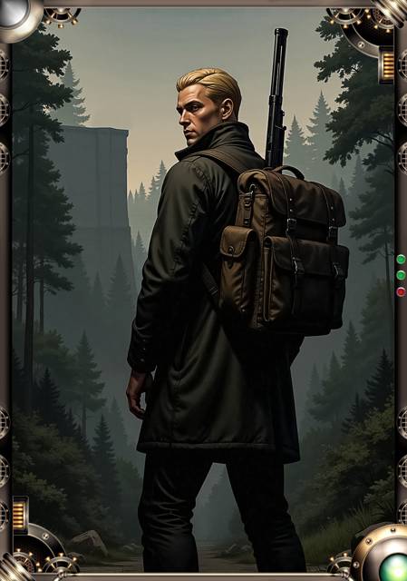 Моя группа была одета в хорошие охотничьи комбинезоны, куртки и горные ботинки. На головах круглые шапочки, за что-то прозванные среди простецов «пидарками». За плечами у каждого плоский жесткий рюкзак. Себе на пояс я еще нацепил контейнер для трофеев, на пять отделений, вдруг пригодится. Подросткам я всучил по револьверу и ножу. Сам же взял два пистолета и два ножа.