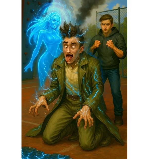 Макс упал на колени, тяжело дыша. Его обычно идеально уложенные волосы теперь стояли дыбом, как иглы у бешеного дикобраза. По его телу пробегали мелкие разряды.