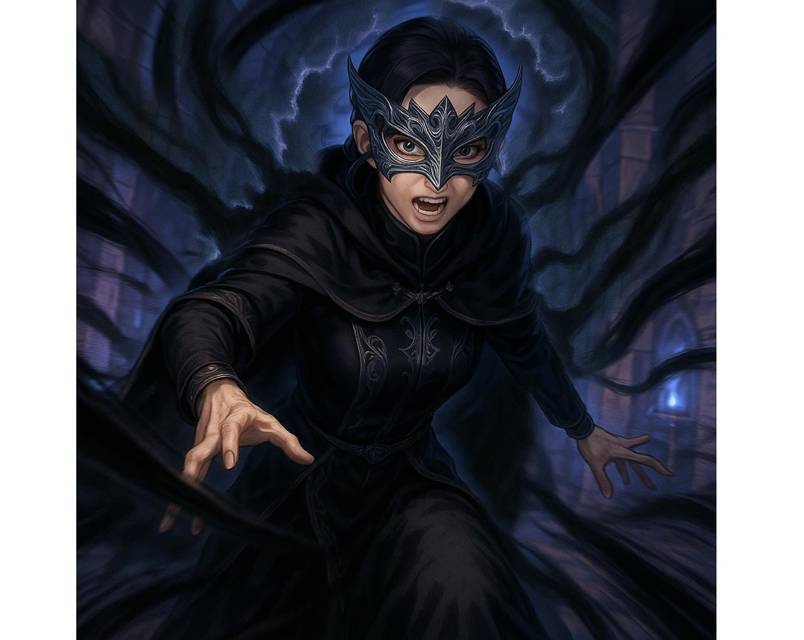 Вокруг неё вспыхнул чёрный защитный покров. От него отделились щупальца, похожие на живые тени. Они молниеносно опутали моё тело, сковывая движения.
