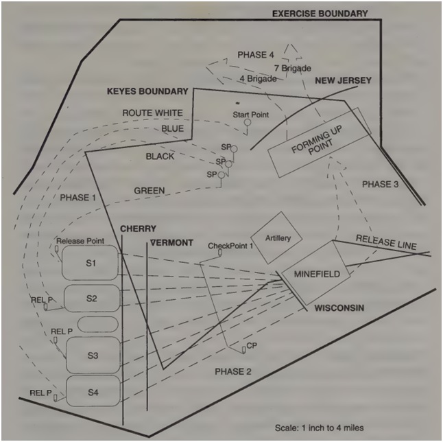 Все учения, будь то в преддверии войны или посреди равнины Солсбери, представляют собой компромисс между тем, что вы намереваетесь сделать, и тем, что происходит на самом деле. Ночной переход через минное поле, который мы много раз обсуждали, планировали и репетировали, не прошел гладко. На местах перехода царил хаос, колонны техники терялись и сталкивались с другими колоннами. Этому не помогло и то, что американские гиды сами заблудились и провели колонны 4-й бригады через наши пункты пропуска. Мой собственный танк направлялся не в ту сторону, когда Ричард вмешался и увел нас от проводников. Он предусмотрительно проверил маршрут при дневном свете и привел нас в нужное место.