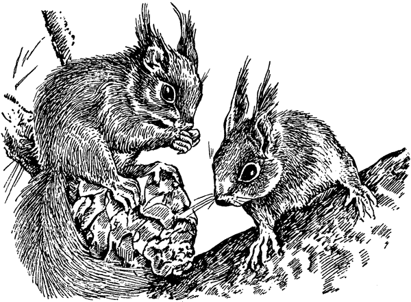 Ну, а теперь поговорим о серых белках. Спросите любого лесничего, что он о них думает. «Похлестче любых крыс, вся разница, что лазают по деревьям», – пробурчит он в ответ. Может быть, так оно и есть, если их чересчур много расплодится, а по мне, так они – настоящие лапочки. У нас в саду растет несколько больших ореховых деревьев, а под ними лежит куча дров; я часто вижу, как белки скачут по этой куче, а с нее забираются на стволы в поисках любимого лакомства.