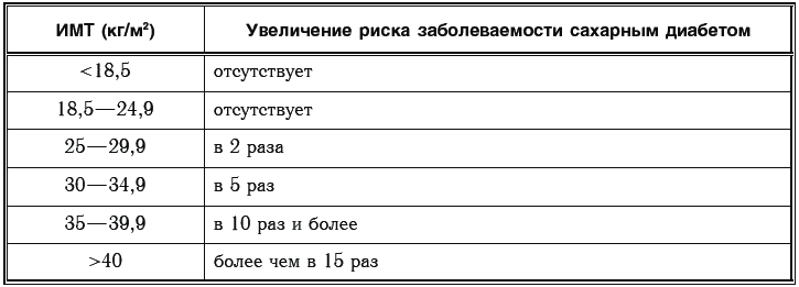 44 Насколько увеличивается риск развития диабета при увеличении массы тела? Определить, насколько увеличивается риск развития диабета при увеличении массы тела, можно по табл. 3.