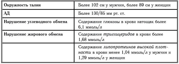 63 Что такое метаболический синдром? Сочетание любых трех факторов, указанных в таблице 4, называется метаболическим синдромом.
