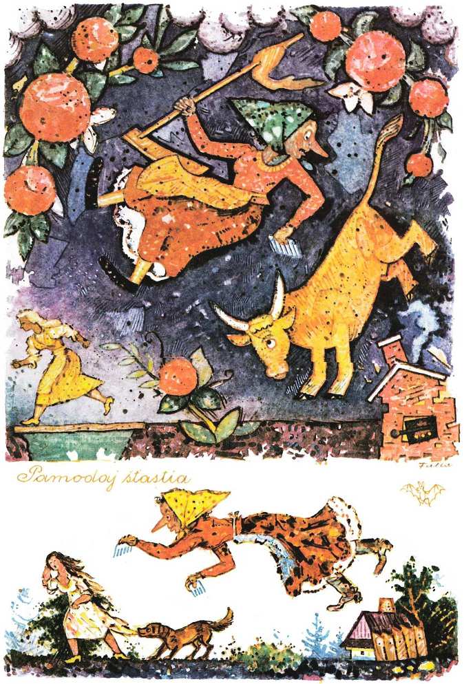 Баба-Яга за ней припустилась, только пятки сверкают. Возле бычка стала ведьма девицу нагонять. Сейчас схватит. А сама кричит, бранью осыпает: