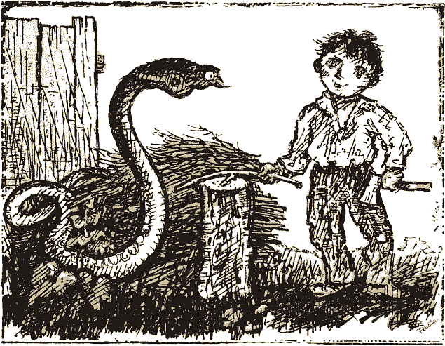 Прошло время – и змей к мальчику привык, стал из рук пищу брать.