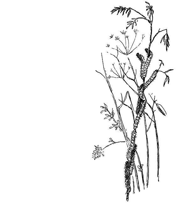 Весь день происходило движение колонны, еда по пути, или небольшие привалы на лакомых растениях. К вечеру колонна сбивалась в кучу на каком-нибудь кустике, и гусеницы, поникнув книзу головами, погружались в сон. Утром, как только теплые лучи солнца падали на сонное сборище, происходило дружное пробуждение, и поход начинался сызнова.