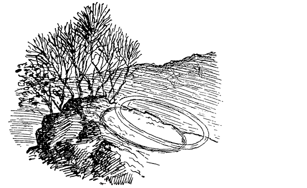 Ручей был соленым. Но вблизи от его начала виднелось маленькое болотце, в центре которого из-под земли выбивались струйки воды, почти пресной и более или менее сносного вкуса. Здесь, у этого источника, и было решено остановиться.