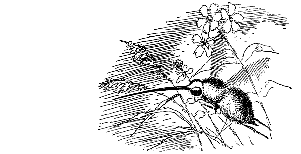 Белоголовые неместриниды перелетают от цветка к цветку, и звонкие песни их крыльев несутся со всех сторон. Часто песня слышится где-то рядом и, прислушиваясь к ней, не сразу отыщешь повисшее в воздухе насекомое. Один за другим обследует неместринида цветы, останавливаясь в воздухе и едва прикасаясь к венчику хоботком. Что-то долго она выбирает подходящий цветок: уж не всюду ли выпит нектар и пусты кладовые? Но вот, наверное, из кувшинчика доносится аромат, песня крыльев повышается на одну ноту. Маленький бросок вперед, ноги прикоснулись к посадочной площадке, и мохнатое тельце исчезает в просторной зале, а длинный хоботок уже проник в узкий коридор и поспешно черпает запасы кладовой. Только змееголовик заставил неместриниду прекратить полет. Открытые цветы она обычно посещает на лету, с воздуха опускает хоботок и пьет нектар, ни на минуту не присаживаясь.
