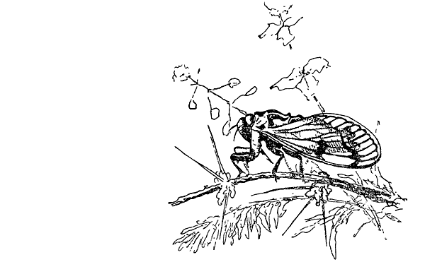 Встреча с большим обществом цикад удавалась не каждый год, и нельзя было упускать возможность понаблюдать за тем, как из почвы выбираются личинки, как из них выходят взрослые насекомые, как они собираются вместе и затевают свои безобразно шумные песни. Образ жизни наших среднеазиатских цикад совсем почти не изучен. А, между тем, они, видимо, роясь под землею, приносят немало вреда растениям пастбищ, уничтожая их корни.
