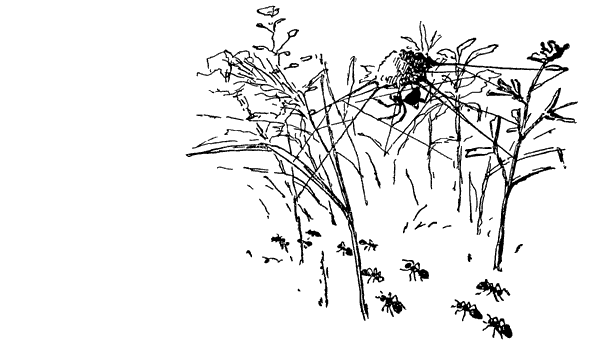 Опустели холмики муравьев-жнецов, и будто вымерли все муравейники. Что с ними стало? Ведь вокруг такой богатый урожай семян!.. Нет, ничего не случилось с муравьями-жнецами. Всю ночь напролет они трудятся, запасая себе корм, но зато на весь знойный день ходы наглухо закупориваются землею, и муравьиный холмик становится безжизненным.
