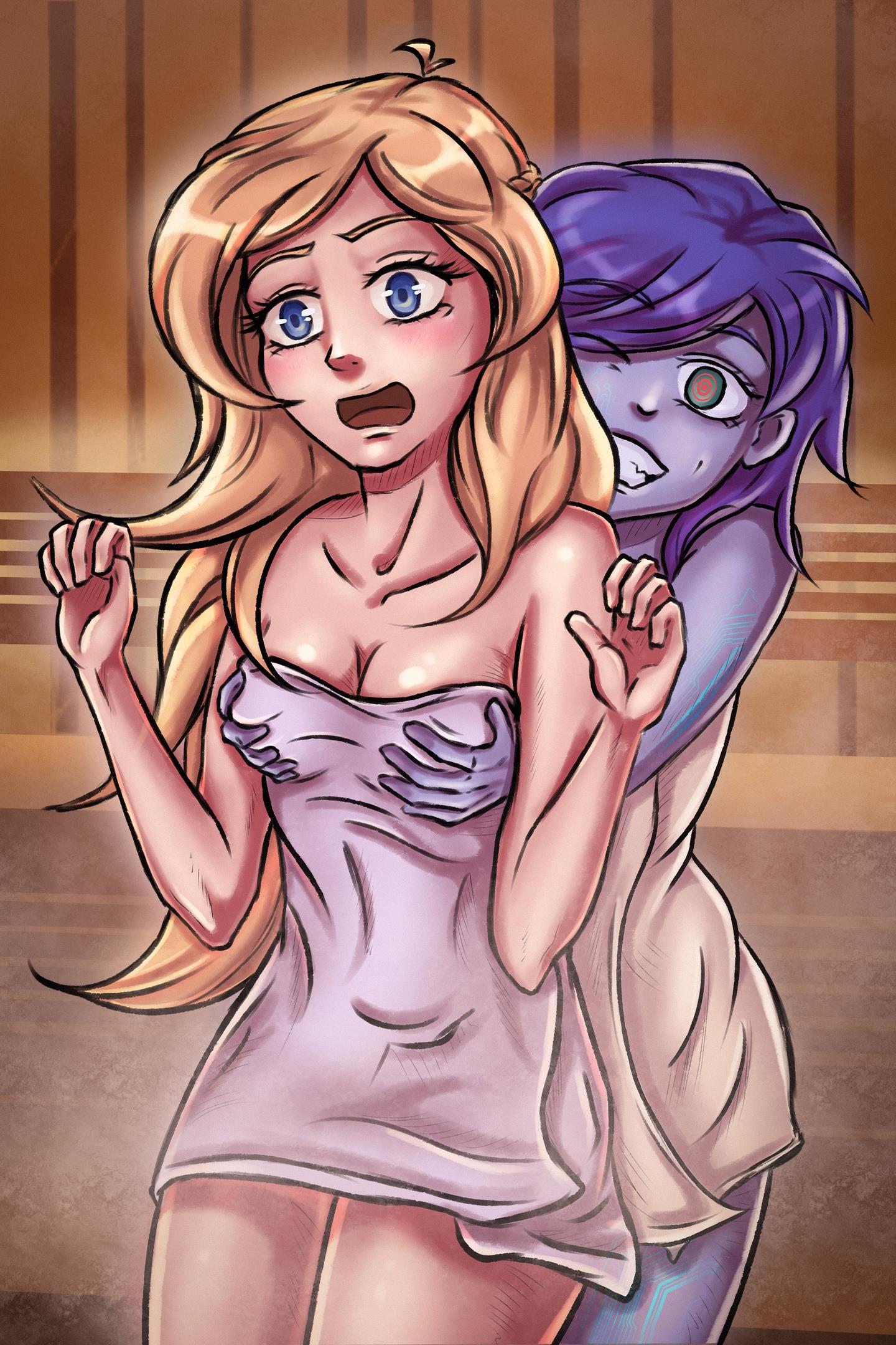 Вайлет вскрикнула и выгнулась, у нее задрожали коленки. Наконец, девушка кое как вырвалась из объятий андроида.