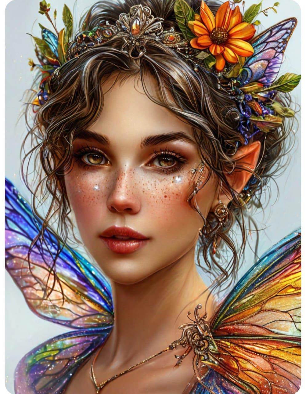 Фея была прекрасной, но не кукольной пупсовой красотой с надутыми щеками, а зрелой и завершённой. Миндалевидные карие глаза с длинными черными ресницами, высокие скулы, не крупный, немного курносый, нос, морковного цвета средней полноты губы, ямочки на щеках и заострённые ушки, не пальмовые листья-лопухи, а именно ушки. Во вьющихся рыжих волосах сверкали разноцветные атласные ленточки, украшенные звёздными кристаллами. Фигура имела пропорции стройной девушки, имелась небольшая грудь. Одета фея была в жакет из переливающихся лепестков цветов, скреплённых между собой блестящими искрами, юбка являлась перевёрнутой лилией нежного голубого цвета. Прозрачные крылья в сложенном виде представляли собой сверкающий короткий плащ, делая фигуру феи немного призрачной. Завершала образ изящная лёгкая серебристая тиара в виде дракона с прижатыми крыльями и вскинутой в фас головой, с камнями изумрудного цвета в глазах. Василиса тут же решила наречь фею гордым именем Этилия, ну или в просторечие Тилькой.
