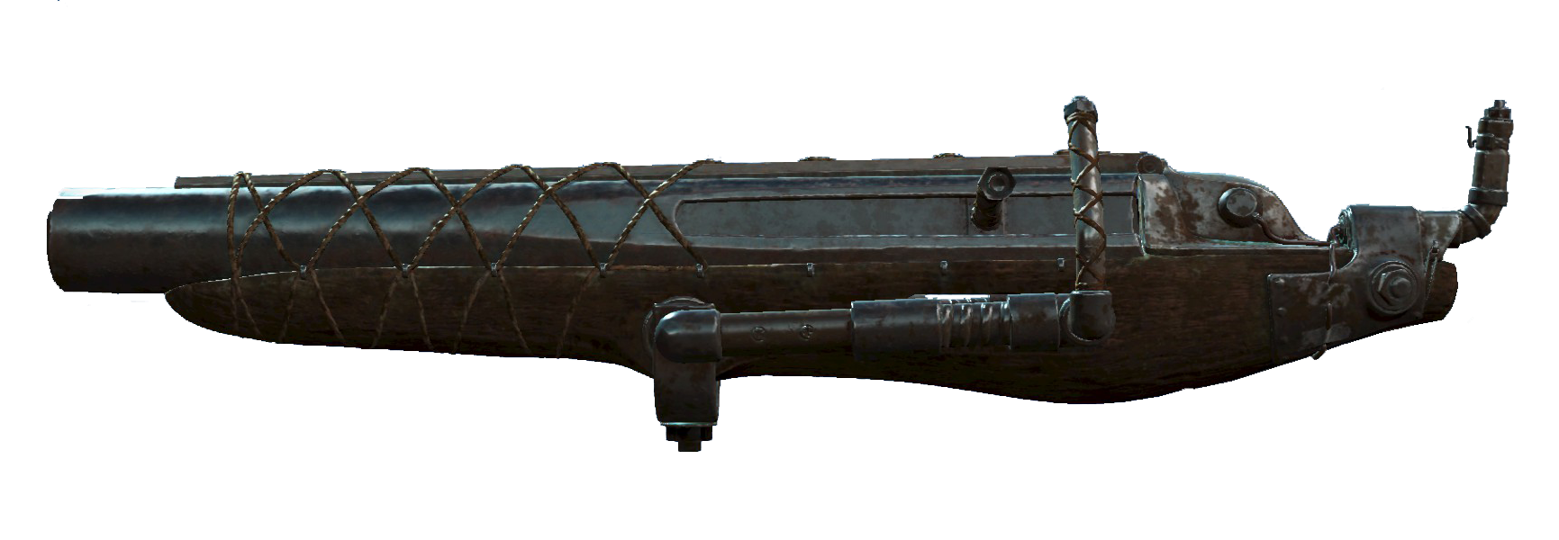 Металлическое устройство длиной в два метра, которое стреляет гарпунами. Устройство представляло: длинное толстое дуло в корпусе из черной стали, бобину с правого боку и две ручки, а также приклад. Одна ручка с низу, другая с левого боку. Снизу под устройством находись три гарпуна и, три бобины с витыми металлическими тросами.