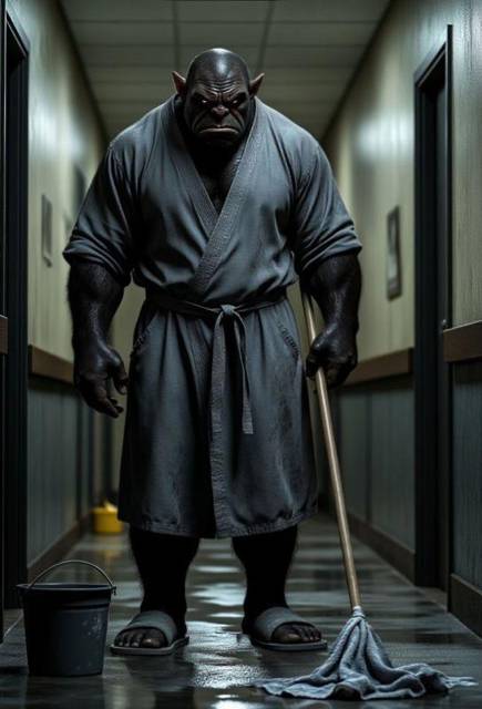 Прикинул, что из этой образины можно легко скроить парочку орков и ещё останется материал на коротышку-гоблина и это при том, что жиру в здешнем работнике веника и совка почти не было. Не больше чем во мне – так уж точно.