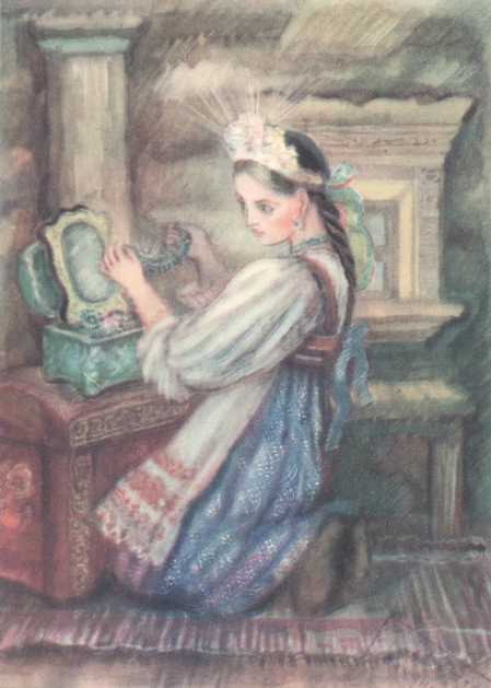 Как вывернулся такой часок, Танюшка и позвала ту женщину в голбец. Достала Танюшка шкатулку, показывает, а женщина поглядела маленько да и говорит: