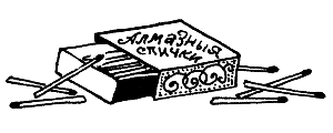 Одного нашего заводского мастера эта спичечная мода и задела. А он сталь варил. Власычем звали. По своему делу первостатейный. Этот Власыч придумал сварить такую сталь, чтоб сразу трут брала, если той сталью рядом по кремню чиркнуть. Сварил сталь крепче не бывало и наделал из нее спичечек по полной форме. Понятно, искра не от всякой руки трут поджигала. Тут, поди-ко, и кремешок надо хорошо подобрать, и трут в исправности содержать, а главное – большую твердость и сноровку в руке иметь. У самого Власыча спичка, сказывают, ловко действовала, а другим редко давалась. Зато во всяких руках эта спичка не хуже алмаза стекло резала. Власычеву спичку и подхватили по заводу. Прозвали ее алмазной. Токари заводские выточили Власычу под спички форменную коробушечку и по стали надпись вывели: «Алмазные спички».