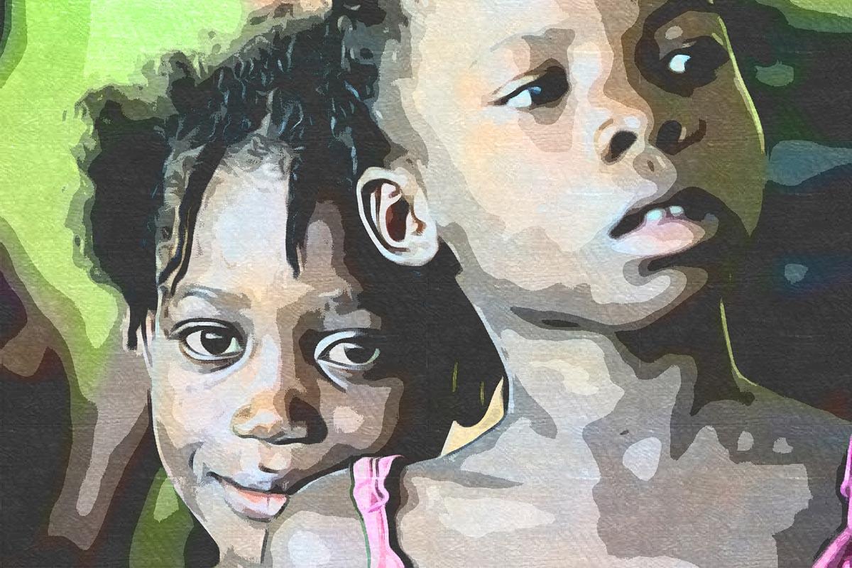 Девочка улыбнулась потрясающе белыми зубами, повернулась к стоящему рядом мальчику, нежно обняла, прижала к себе, а потом, глядя в глаза, сжала ладошками его голову.