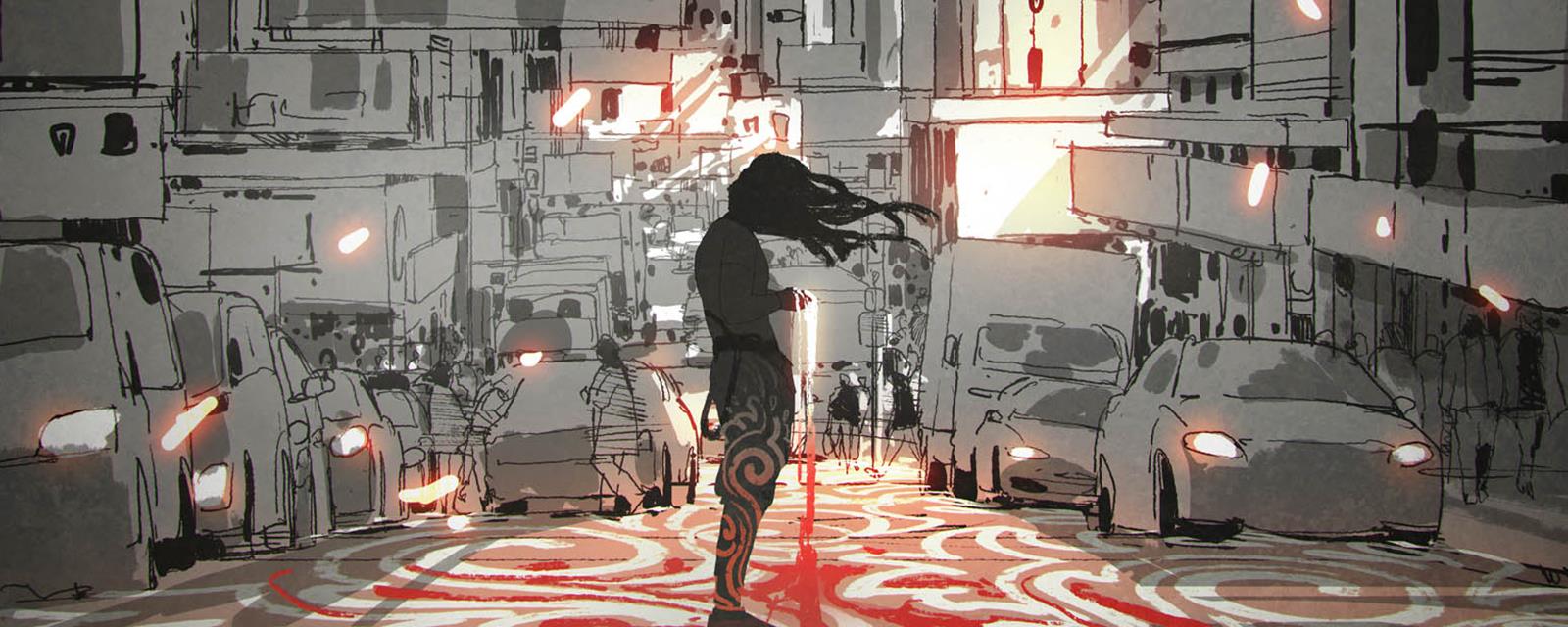 Мы спустились в гостиную. Там сидят несколько ребят, активно что-то обсуждающих. Краткие реплики, зато по коже мечутся, возникают и пропадают картинки. Скин-толк как он есть. Каждая – мем, означающий либо ситуацию, либо эмоцию, либо и то и то. Я знаю лишь самые базовые, остальные меняются слишком быстро. Надо быть постоянно включённым в контекст, иначе рассинхронизируешься с коллективным бессознательным. Это объединяет. Или нет. Чёрт его поймешь. Но я как глухонемой в их разговорах, состоящих из слов меньше, чем на треть.
